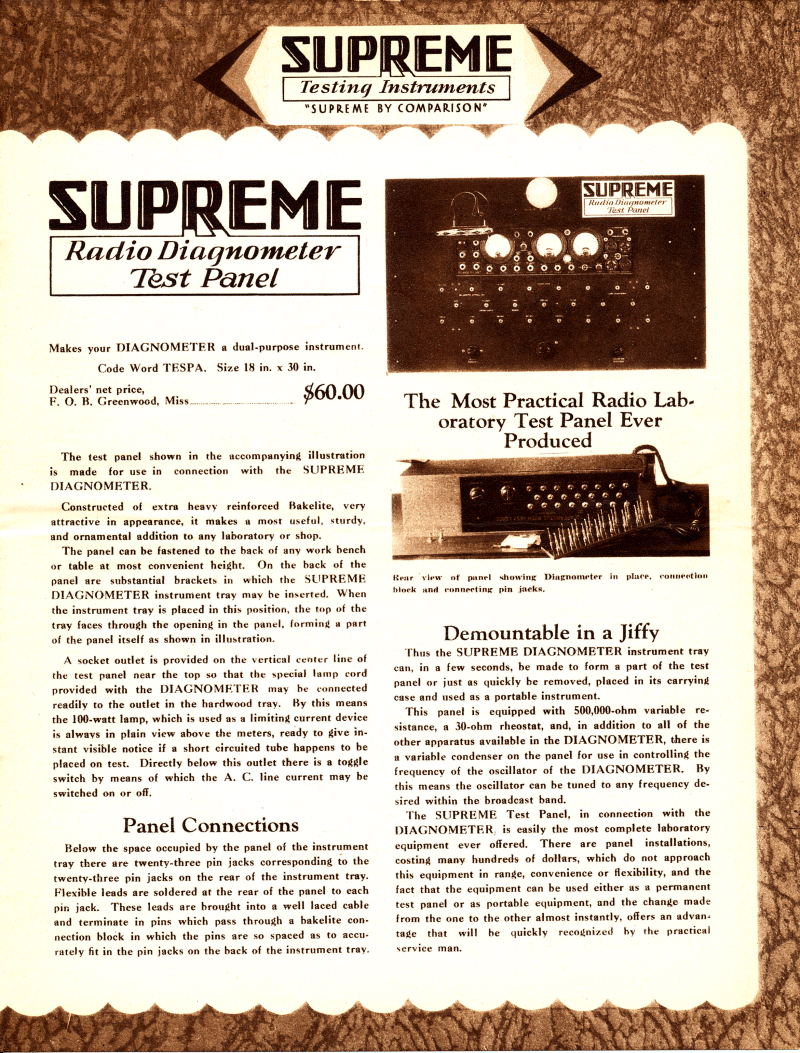 Home Page Supreme History Tube Testers Radio Diagnometers Multimeters
