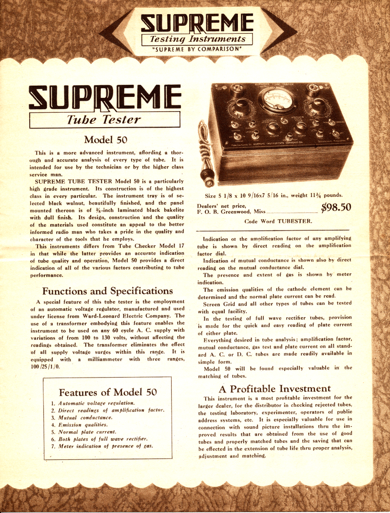 Home Page Supreme History Tube Testers Radio Diagnometers Multimeters