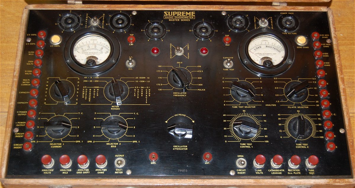 Supreme Diagnometers generally contained the functions of tube testers, RF signal generators, voltage,
