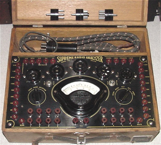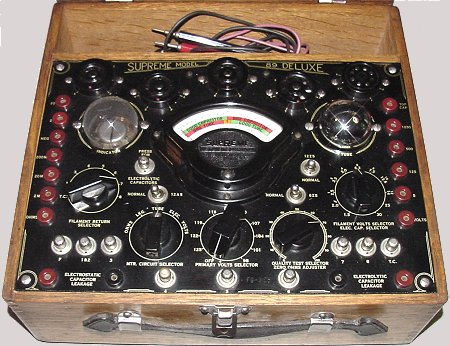 The Supreme 89 Deluxe tube tester not only tests tubes but also has a voltmeter, ohmmeter,